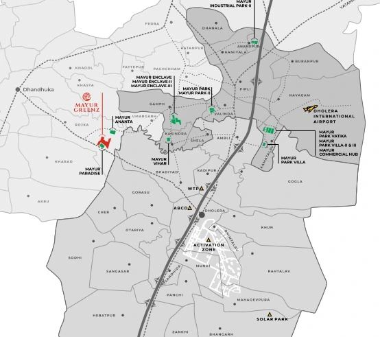 Mayur Greenz is a residential plotting project in the developing Dholera region, offering planned plots suitable for future home construction and long-term investment.