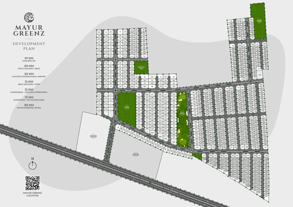 Mayur Greenz is a well-designed residential plotting project situated in the rapidly developing Dholera region. The project offers a neatly planned layout with proper internal roads and basic infrastructure, making it suitable for future home development as well as long-term investment. With its strategic location in a growth-focused area and an emphasis on clear, well-organized planning, Mayur Greenz presents a reliable option for those looking to be part of Dholera’s evolving future.